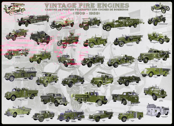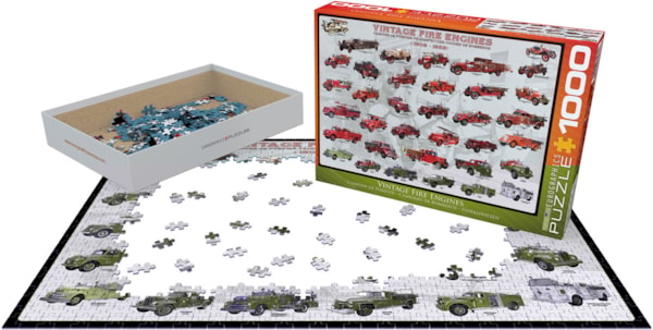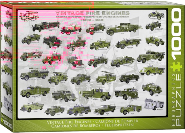 EuroGraphics Vintage Fire Engines 1000-Piece Puzzle- Box size: 10" x 14" x 2.37". Finished Puzzle Size: 19.25" x 26.5".