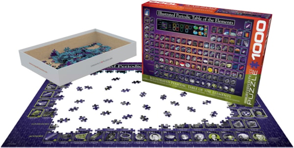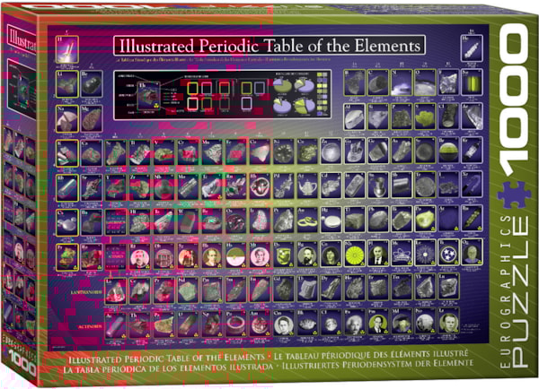 Eurographics Puzzles Illustrated Periodic Table of the Elements 1000-Piece Puzzle- Box size: 10" x 14" x 2.37". Finished Puzzle Size: 19.25" x 26.5".