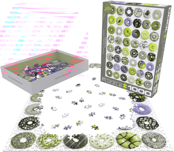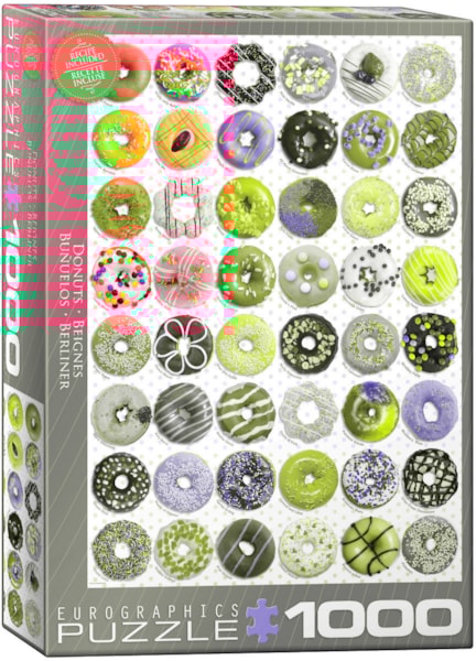 - Enjoy putting together this puzzle with 48 donuts and zero calories! Recipe included on the back of the box.