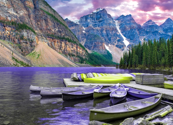 The best places take a little extra effort to get to. Pack your lunch and grab a canoe, and don't forget to the bring the whole family! This beautiful HDR photograph of the dock at Lake Louise will inspire you with depth of colour and realism.