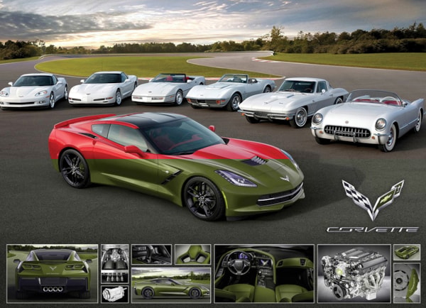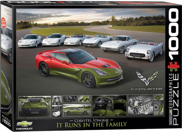 EuroGraphics 2014 Corvette Stingray It Runs in the Family 1000-Piece Puzzle- Box size: 10" x 14" x 2.37". Finished Puzzle Size: 19.25" x 26.5".