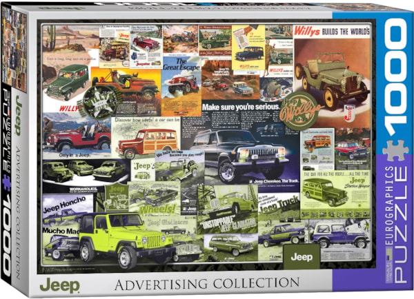 EuroGraphics Jeep Advertising Collection 1000-Piece Puzzle- Box size: 10" x 14" x 2.37". Finished Puzzle Size: 19.25" x 26.5".