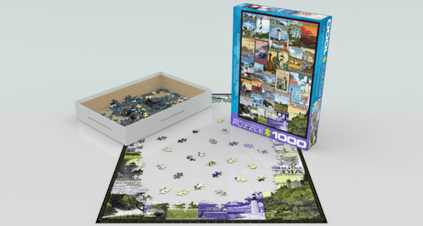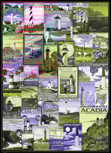 EuroGraphics Lighthouses Vintage Posters 1000-Piece Puzzle- Box size: 10" x 14" x 2.37". Finished Puzzle Size: 19.25" x 26.5".