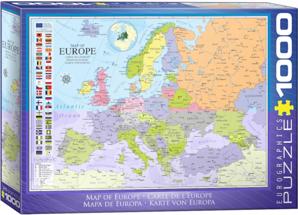 EuroGraphics Map of Europe 1000-Piece Puzzle- Box size: 10" x 14" x 2.37". Finished Puzzle Size: 19.25" x 26.5".