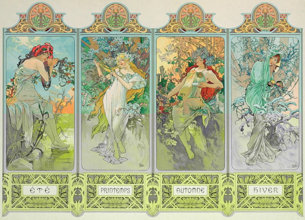 - Alphonse Maria Mucha is a Czech painter who is best known for creating the style "Art Nouveau". Four Seasons was created in 1895.