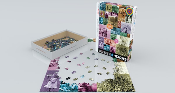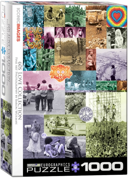 EuroGraphics 60s Love Collection by Baron Wolman 1000-Piece Puzzle- Box size: 10" x 14" x 2.37". Finished Puzzle Size: 19.25" x 26.5".