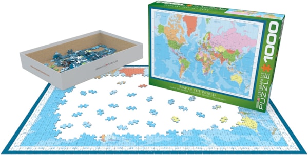 EuroGraphics Map of the World 1000-Piece Puzzle- Box size: 10" x 14" x 2.37". Finished Puzzle Size: 19.25" x 26.5".