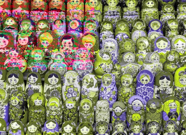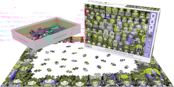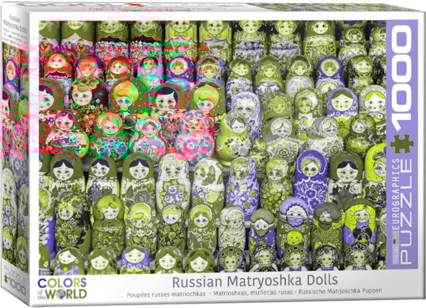 The Matryoshka dolls, also known as Russian nesting dolls or stacking dolls is a set of wooden dolls of decreasing size placed one inside the other. This colorful image makes for a beautiful puzzle in this collectible theme.