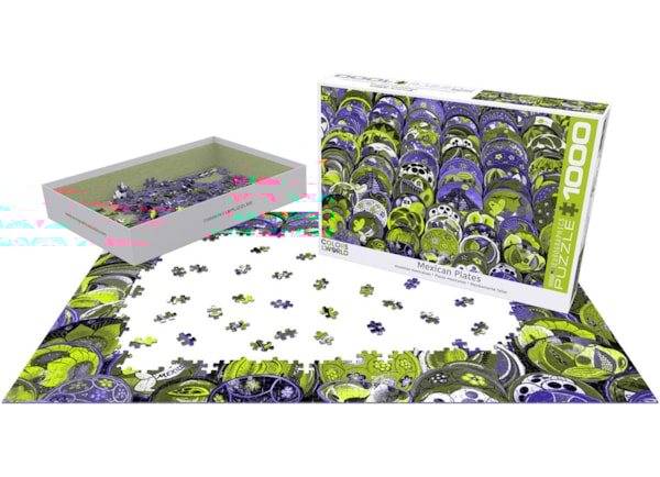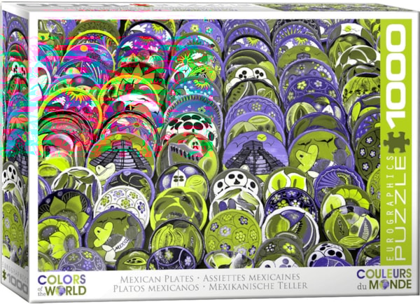 Explore the vibrant colors and intricate designs of traditional Mexican pottery with the Eurographics 1000-piece puzzle, Mexican Plates. Part of the Colors of the World collection, this puzzle captures the stunning diversity of hand-painted plates, each with unique patterns inspired by Mexican culture and heritage. As you piece together each plate, you’ll be transported to a bustling Mexican market, filled with artistry and tradition. Perfect for puzzle enthusiasts and cultural explorers alike, this puzzle not only challenges your mind but also celebrates the beauty of Mexican craftsmanship. Enjoy hours of engaging activity and immerse yourself in the rich colors of Mexico!