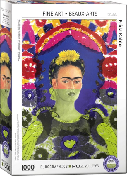 Step into the vibrant and powerful world of Frida Kahlo with this stunning 1000-piece puzzle from Eurographics. Featuring one of her most iconic self-portraits, this artwork is richly surrounded by colorful floral and folkloric motifs that reflect Kahlo’s unique style and cultural roots.
