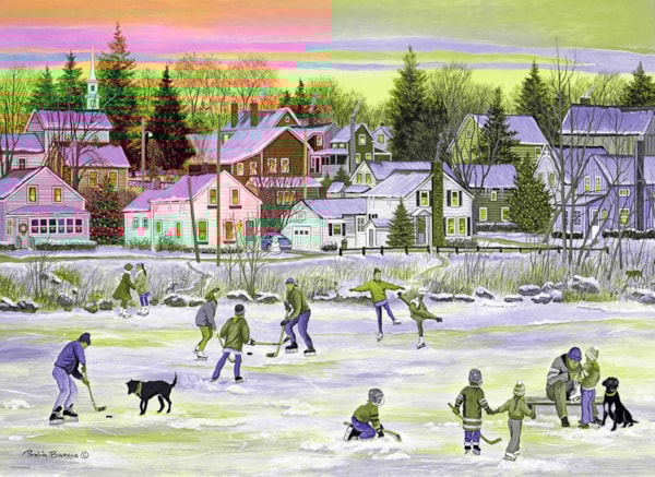 Winter is hear and the neighborhood pond becomes a playground! A little ice skating, some hockey and bring the family dog too!