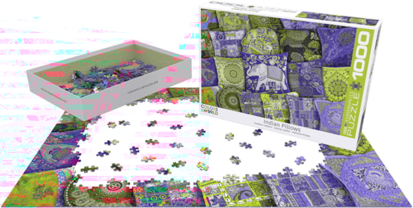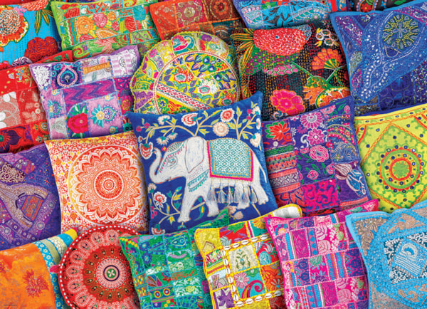 EuroGraphics Indian Pillows . 1000-Piece Puzzle- Box size: 10" x 14" x 2.37". Finished Puzzle Size: 19.25" x 26.5".