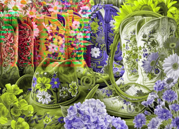 Crafted with high-quality, precision-cut pieces, the Cowgirl Boots puzzle offers a fun and rewarding challenge for puzzle enthusiasts. As you piece together the vibrant details of each boot and the surrounding blooms, you'll be transported to a world of timeless Americana charm. Perfect for fans of Western fashion, intricate designs, and a lively puzzle-solving experience!