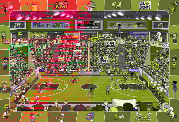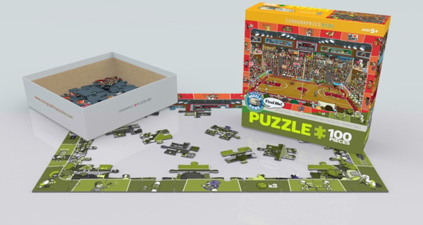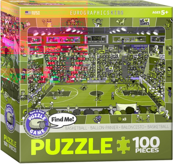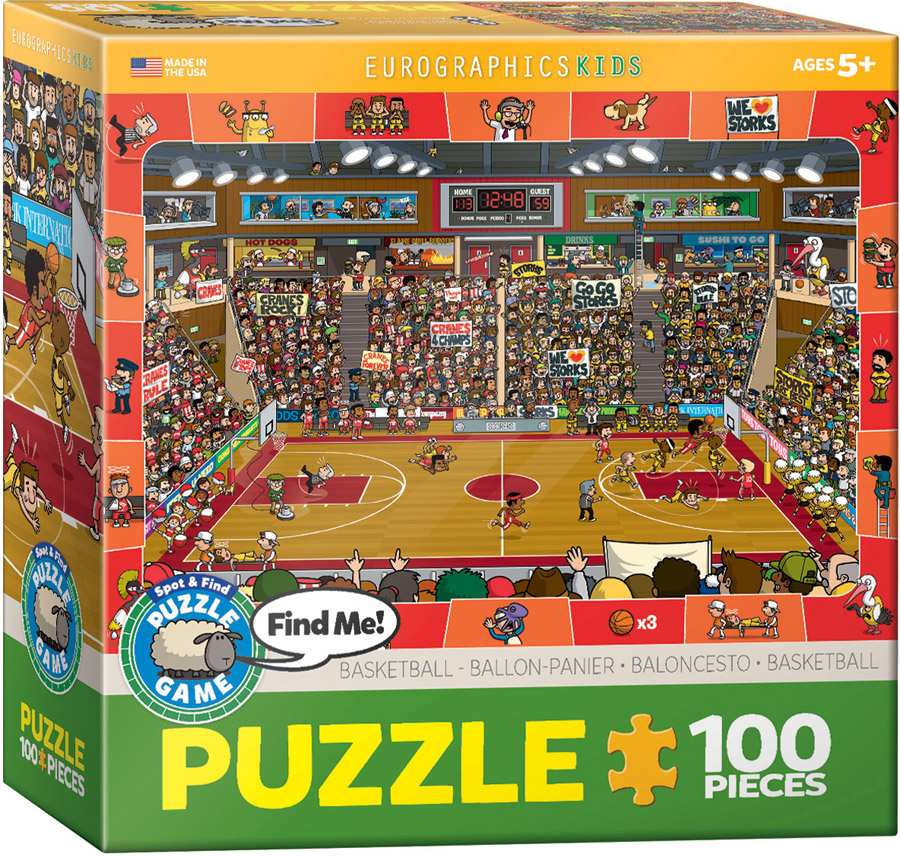 Lots of fun happens at the basketball game, but you'll have to look carefully to make sure you don't miss any of it. This unique spot & find game adds to the fun of a jigsaw puzzle by challenging kids to find hidden items inside the picture.