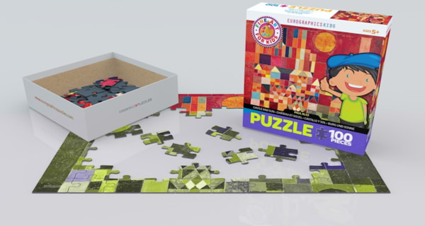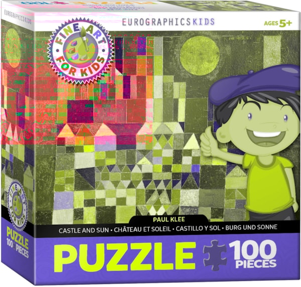 Help your child gain an appreciation for fine art with this 100 pc puzzle. Castle and Sun is an innovative painting by Swiss artist Paul Klee. The stylish images are created out of different geometric shapes and various shades of color. The lone sun shines in the ingeniously designed sky created by strong lines and structure. In addition, various rectangular sizes add depth to the abstract image.