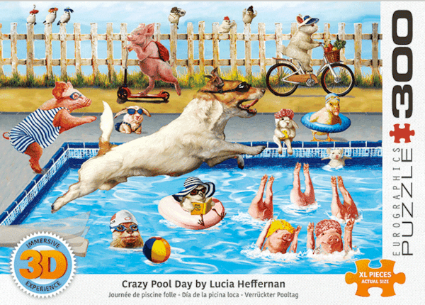 Get ready for splashes and laughter with Crazy Pool Party (Lenticular 3D) Puzzle (300 pieces) by Lucia Heffernan! Dive into a hilarious summer scene featuring animals having the time of their lives at the pool.