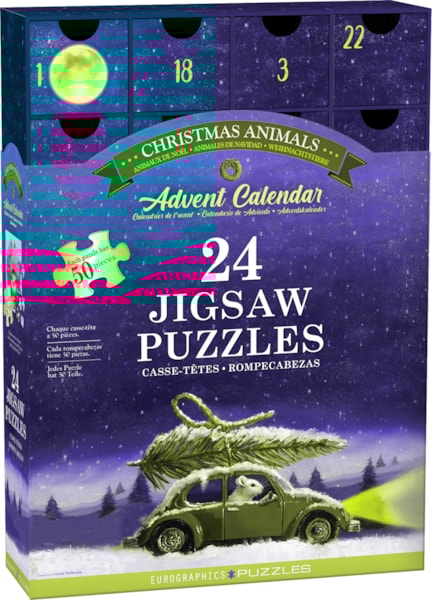 This Advent Calendar combines the excitement of a countdown with the relaxation of puzzling, making it perfect for the whole family. Whether you're a puzzle enthusiast or just love heartwarming holiday art, Christmas Animals adds a special touch to your seasonal traditions. Create 24 magical memories as you piece together these festive scenes, one day at a time!