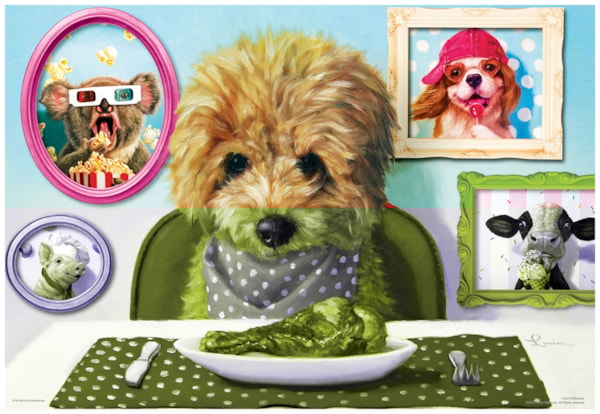 Keep your food fresh while enjoying a charming puzzle featuring a fluffy pup at dinner, surrounded by quirky animal friends. A fantastic gift for kids and animal lovers alike!