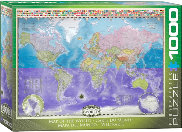 EuroGraphics Map of the World 1000-pièces Puzzle- Taille de la boîte: 10" x 14" x 2.37". Taille terminée du puzzle: 19.25" x 26.5".