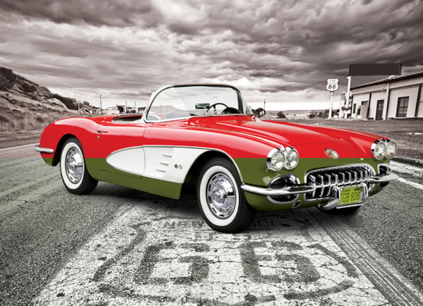 1959 Corvette conduisant la route 66