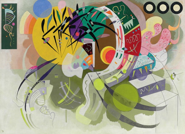 - Ce painitng a été terminé en 1936 par le peintre Wassily Kandinsky qui est le père de l'art abstrait. Il a renoncé à une carrière dans l'enseignement du droit et econimics à suivre sa passion.