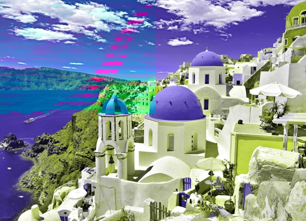 La petite ville d'Oia en Grèce est connue pour ses maisons en forme de dôme blanc et bleu. Construit sur une pente raide, les maisons ont été creusées dans la roche. Le cadeau parfait!