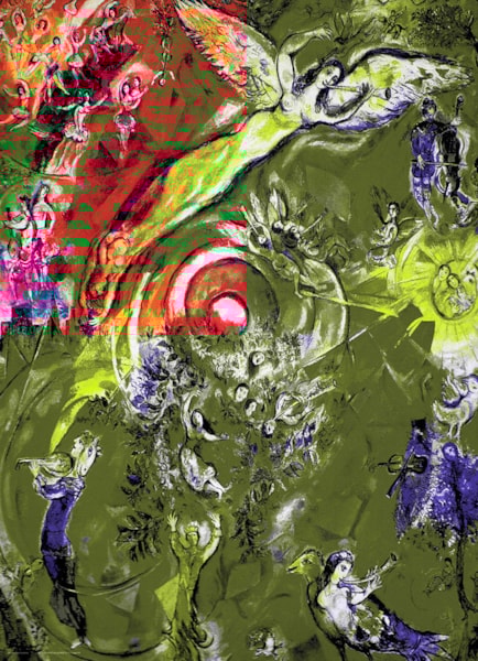 - Omniprésente dans son travail, la musique a été une source d'inspiration constante pour Marc Chagall. Chagall a travaillé sur cette création pour le Metropolitan Opera de New York en 1966.