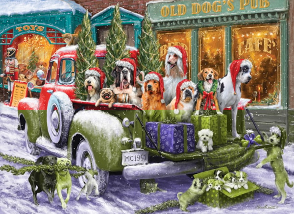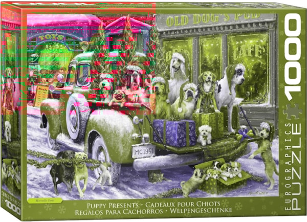 Célébrez la magie de Noël avec le casse-tête de 1000 pièces Cadeaux pour chiots d'Eurographics, mettant en vedette l'œuvre réconfortante de Marcello Corti ! Ce puzzle festif capture une scène adorable où un joyeux groupe de chiots, coiffés de bonnets de Père Noël, se balade dans un camion rouge classique. Entourés de neige, de sapins de Noël et de cadeaux joliment emballés, ces chiots joueurs sont prêts à répandre la joie des fêtes partout où ils vont. Le décor pittoresque d'un village enneigé ajoute une touche nostalgique à ce merveilleux paysage hivernal.
