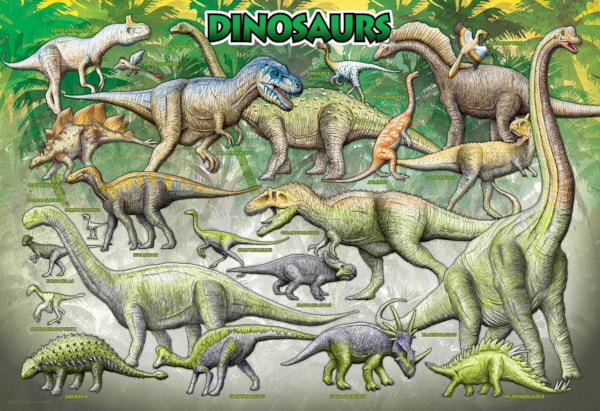 Remontez le temps avec ce casse-tête de Eurographics "Dinosaures". Ce puzzle de 100 pièces présente une illustration vibrante d'une grande variété de dinosaures, du gigantesque Brachiosaure au puissant Tyrannosaure Rex. Chaque dinosaure est identifié par son nom, ce qui en fait une activité amusante et éducative pour tout jeune paléontologue.