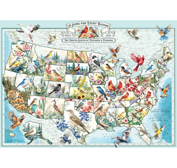 Célébrez les oiseaux et les fleurs des États-Unis avec ce casse-tête à très grandes pièces de Eurographics. « Une chanson pour chaque fleur » présente la carte du pays illustrée des oiseaux et fleurs de chaque État—une scène inspirante, aussi éducative que magnifique. Les pièces surdimensionnées, faciles à manipuler, rendent l’assemblage agréable pour tous, et l’illustration détaillée donne envie d’explorer chaque plume et chaque pétale. Une belle activité pour apprendre, relaxer et admirer la nature.