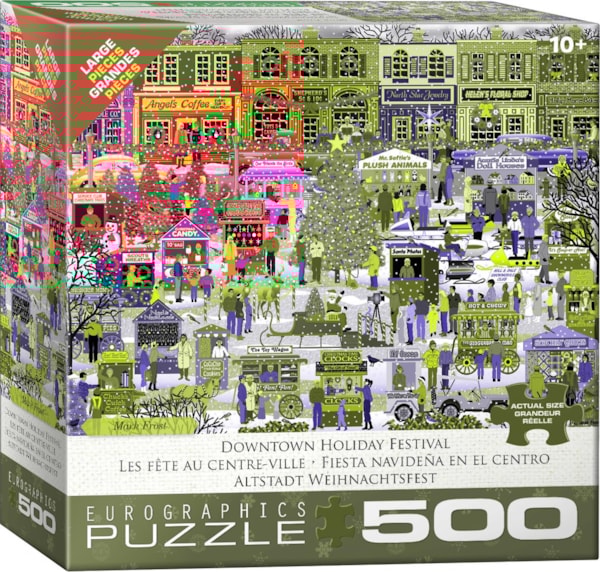 Célébrez la magie du temps des Fêtes avec Les fête au centre-ville, un casse-tête de 500 pièces signé Eurographics. Rempli de couleurs vives et d'ambiance festive, ce casse-tête vous plonge dans une scène animée d’un centre-ville hivernal, avec ses kiosques, lumières, familles et activités joyeuses.